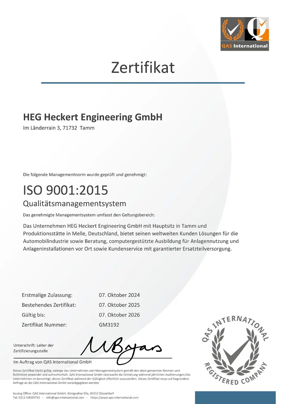 Mit kontinuierlichen Überwachungsaudits trägt QAS International dazu bei, dass wir als Firma Heckert Engineering kontinuierliche Verbesserungen erzielen. Ein Team erfahrener Auditoren überprüft die grundlegenden Geschäftskontrollen und ist ständig bestrebt, uns bei der Erzielung kontinuierlicher Verbesserungen und Geschäftsleistung zu unterstützen.